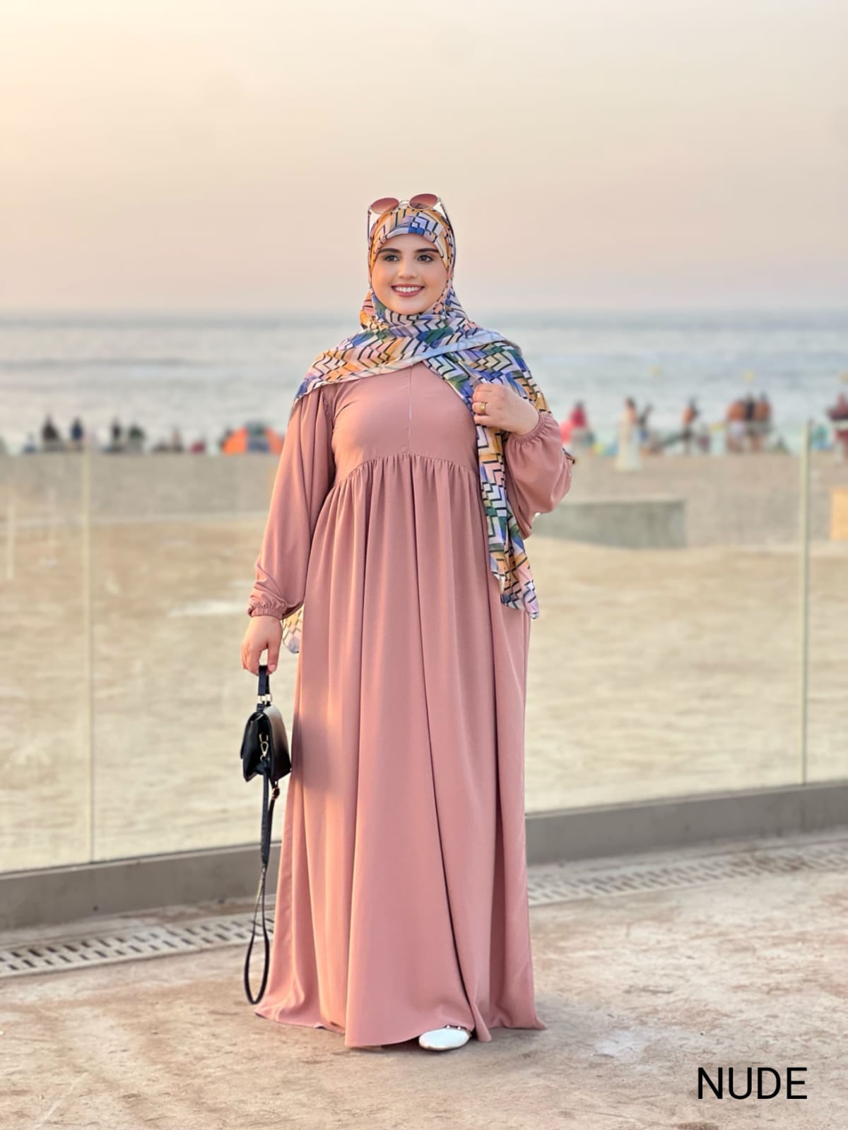 موديل "CHAAMS" يتكون من عباءة واحدة تتميز بسنسله في نصف الطوق الامامي بنوعيه ثوب كريب روزا مقاسات S M L XL XXL