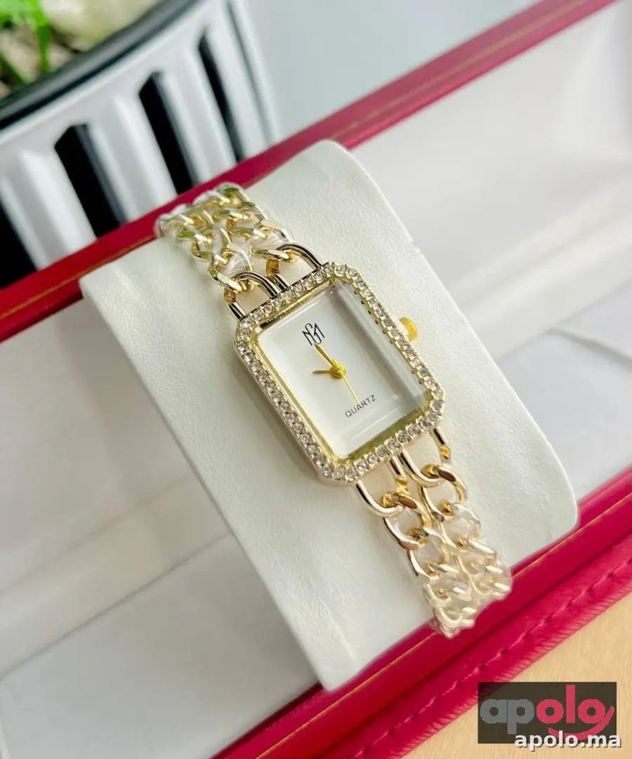 ساعة نسائية أنيقة مع سوار فاخر وبوكس هدية مميز